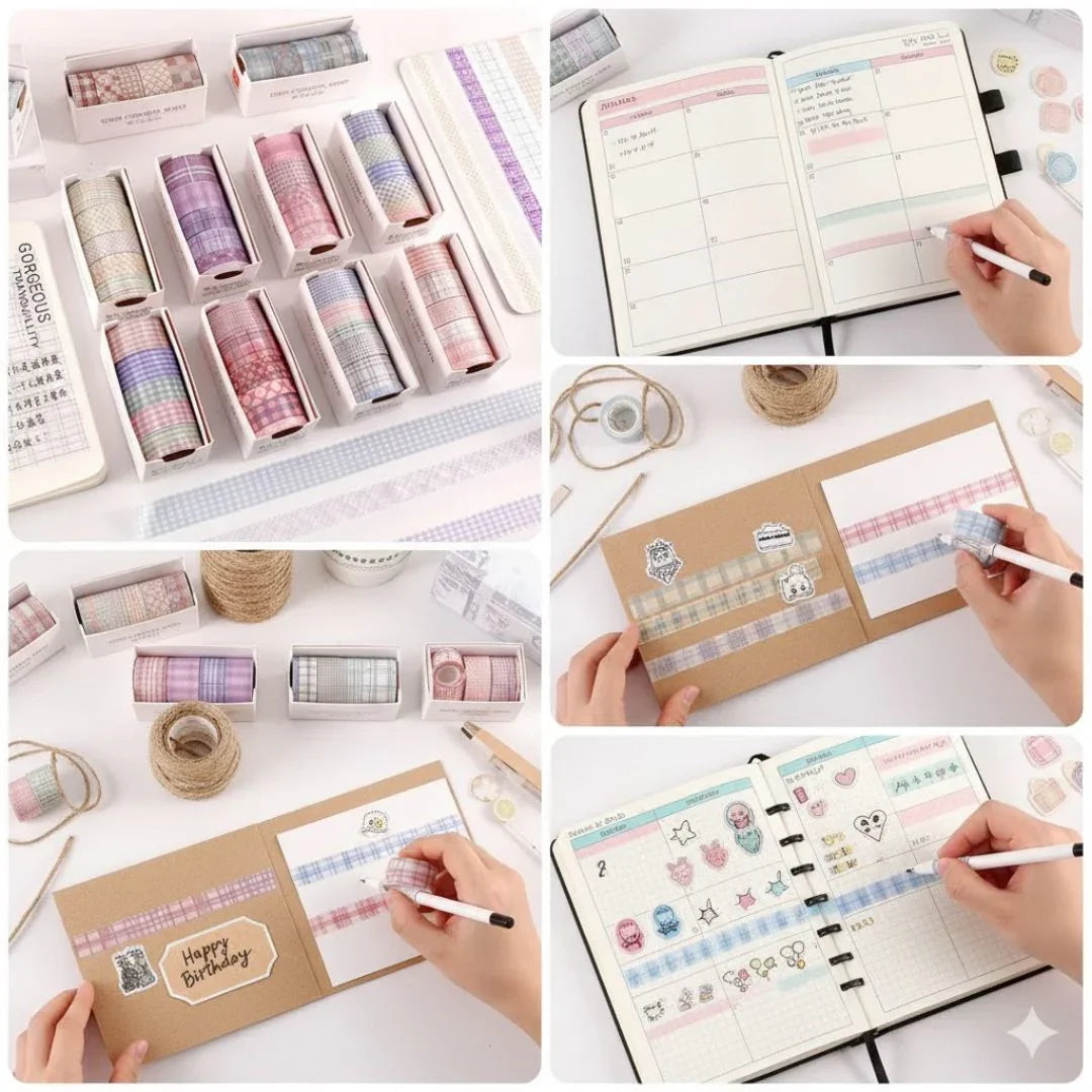 Grid Washi Tape, Checkered Washi Tapes, Decorative Masking Tape, Bullet Journal Tape, Planner Washi Set, Craft Adhesive Tape, DIY Scrapbooking Tape, Washi Tape for Crafts, Gift Wrapping Tape, Pastel Washi Tape, Rack Jack Washi Tape, Aesthetic Stationery Tape, Grid Design Decorative Tape.