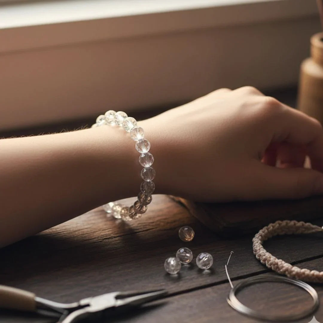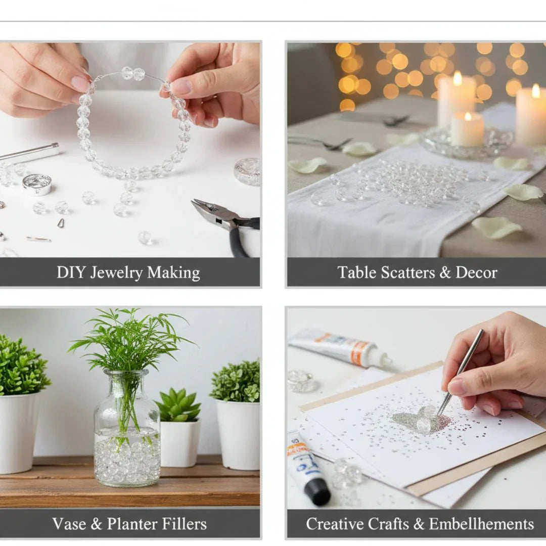 Transparent crystal beads pack ideal for DIY jewellery, bracelets, necklaces, and keychains. Premium-quality finish with faceted design that adds sparkle and elegance to handmade creations.