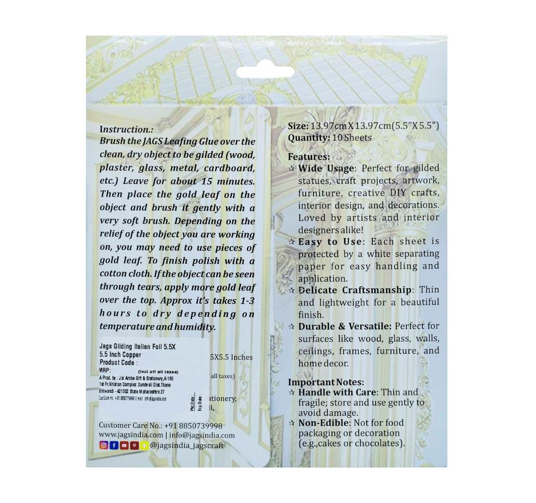 Jags Gilding Italian Foil – Rose Gold, 5.5 x 5.5 Inch