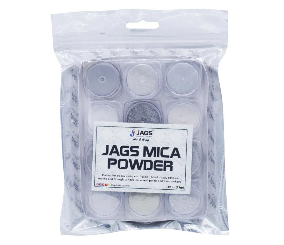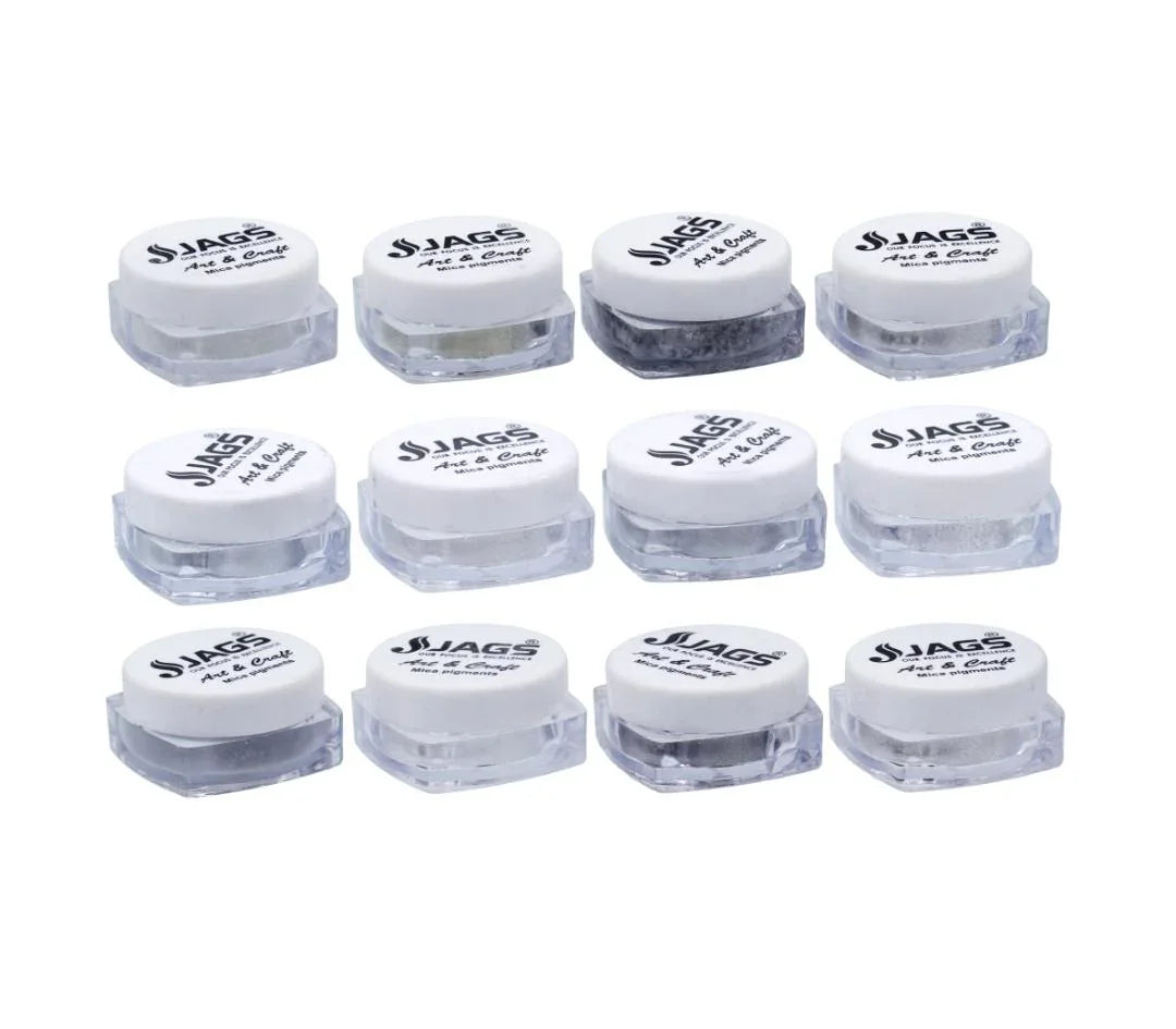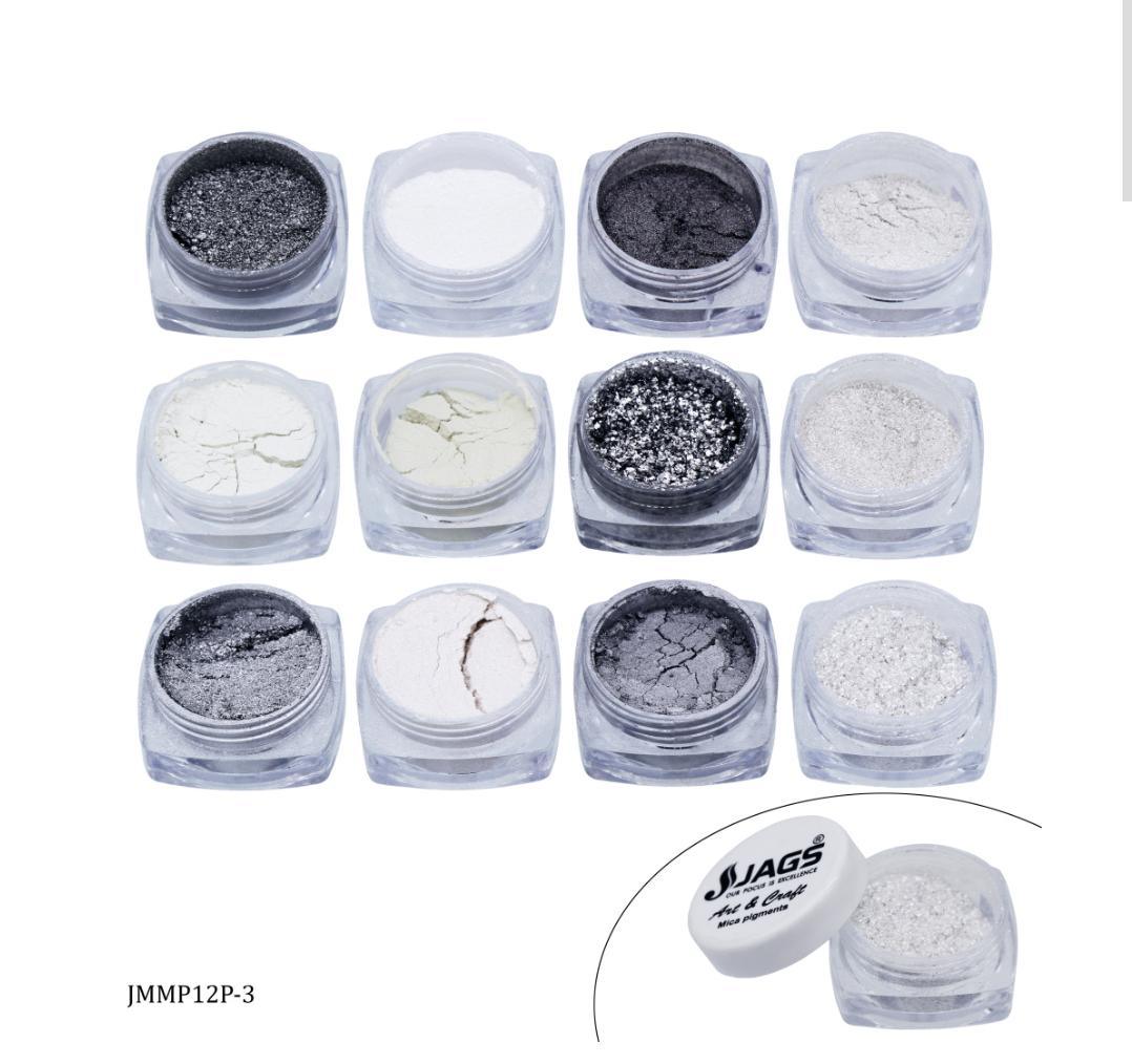 Jags Mica Powder Silver Shade 12 Pcs Set (12Gms) JMMP12P-3