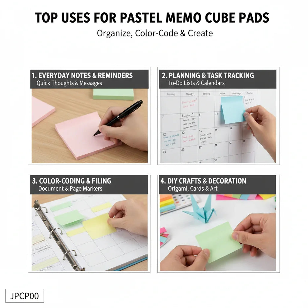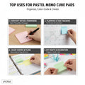 - Keywords : Pastel memo cube, Sticky note pad, Memo cube pad, 3x3 note pad, Pastel note paper, Writing cube pad, Desk note cube, Craft memo pad. Office & school notes, Journaling and planning, Scrapbooking supplies, Desk organization, DIY craft projects, Reminder notes, Study essentials. Writing cube pad, Desk note cube, Craft memo pad.