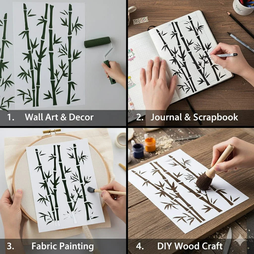 - Stencils enable effortless incorporation of bamboo beauty into artwork.