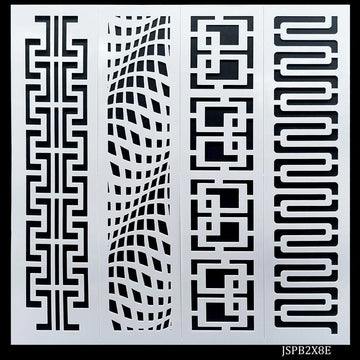 - Jags Stencil Plastic Border 4in1 2x8 Inch set is a collection of meticulously designed border stencils.