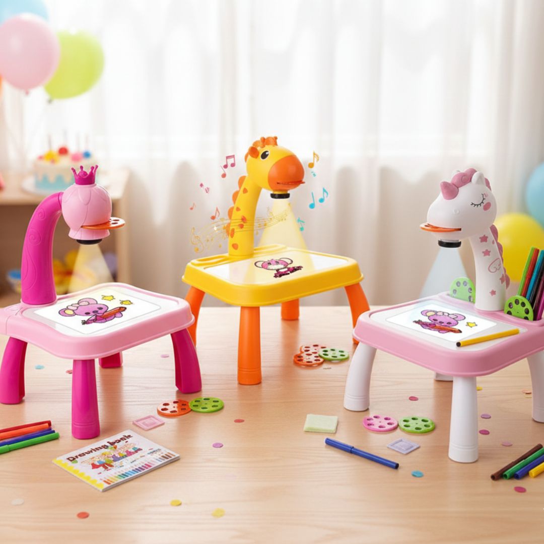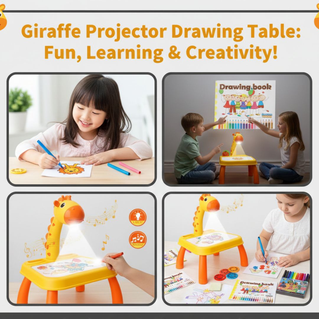 giraffe projector table, kids drawing projector, tracing table for kids, projector art toy, kids learning toy, painting projector, art table for toddlers, drawing set for kids, birthday gift kids, projector light drawing toy, creative learning table, kids educational toy