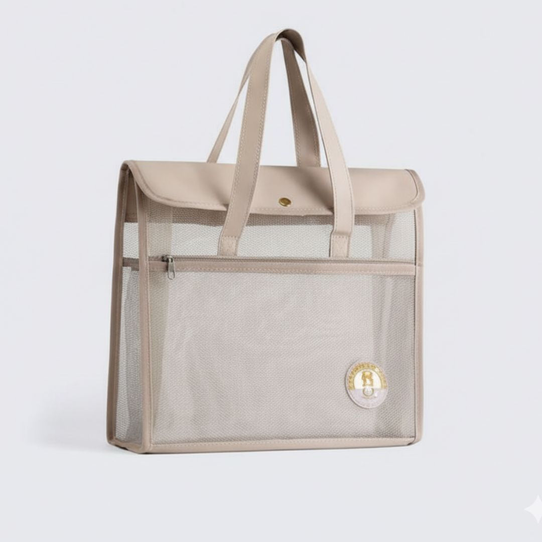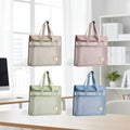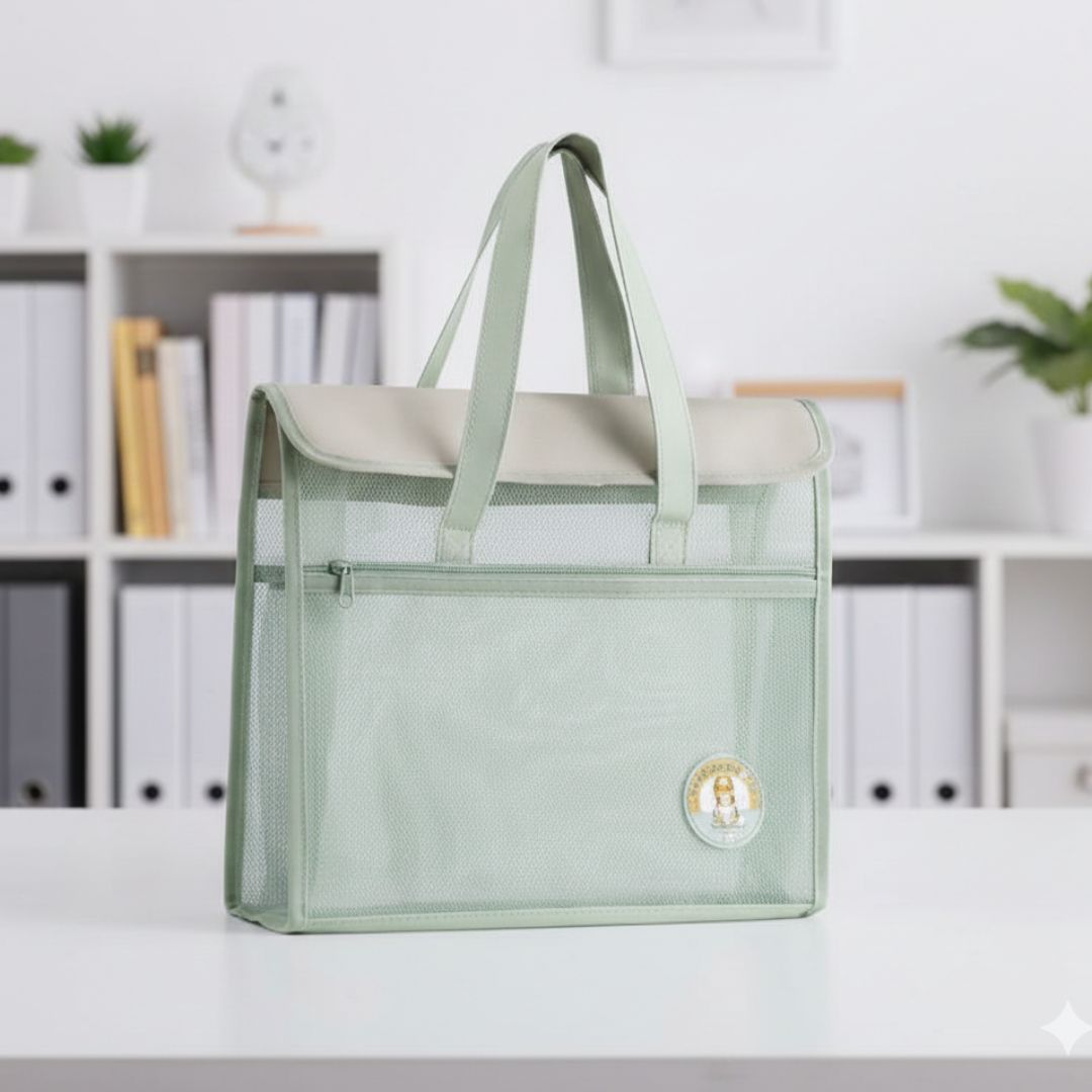 transparent folder bag, mesh document bag, expanding file bag, school file pouch, office document organizer, large transparent tote, pastel stationery bag, study bag, book carry bag, zipper folder bag, student essentials bag, clear file bag
