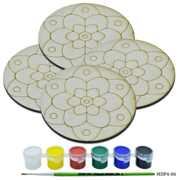 MDF DIY Painting Kit Round Rangoli 4 Inch 4Pcs Set