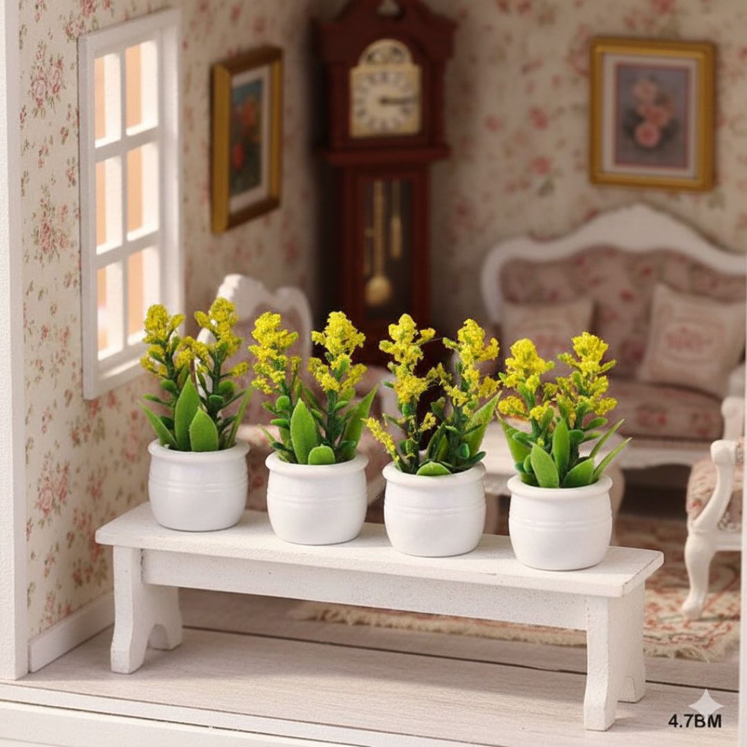 Miniature Yellow Flower Bushes (4pcs) Pack of 1 : This cute lil’ set is the ultimate glow-up for miniature setups, craft scenes, dollhouses, terrariums, or desk décor. The tiny yellow blooms instantly add a bright, cheerful vibe wherever you place them — literally giving sunshine energy in mini form.