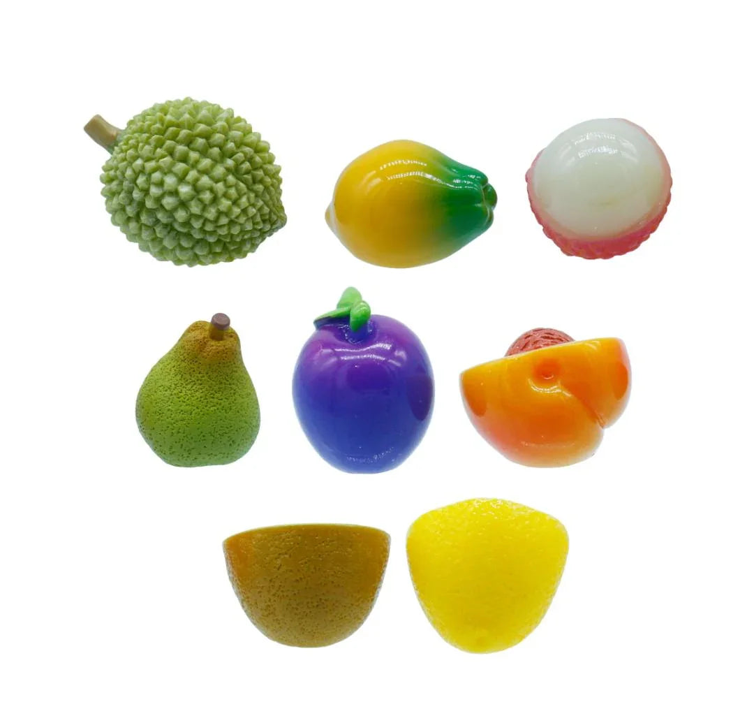 Design: Miniature fruit models in assorted vibrant colors and realistic designs (includes fruits like oranges, pineapples, watermelons, and more)
