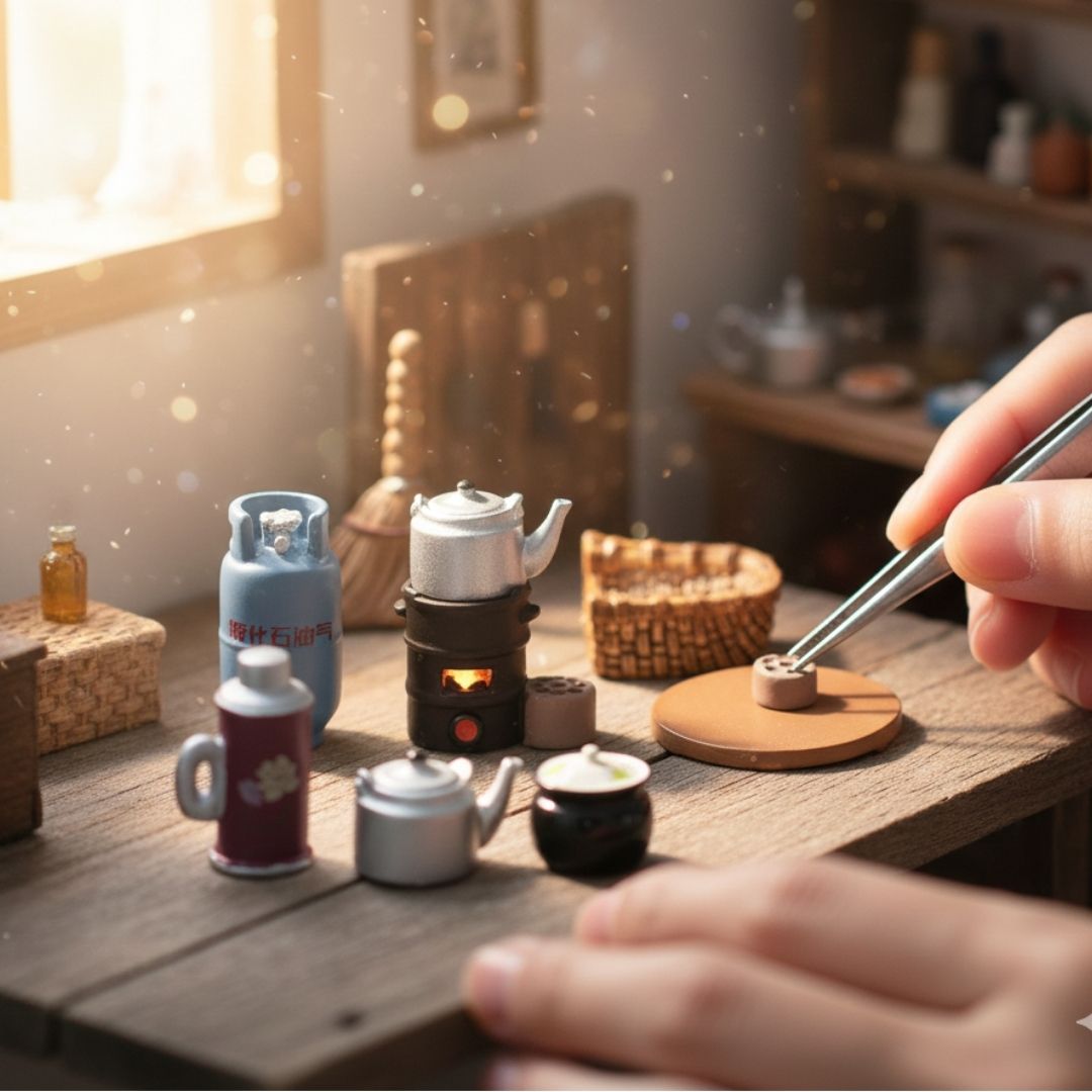 Keywords: miniature kitchen set, dollhouse accessories, tiny kitchen props, resin miniature items, dollhouse cooking set, diorama miniature tools, kitchen miniatures, tiny gas cylinder model, resin craft fillers, fairy garden accessories, miniature broom and basket, vintage tiny utensils, mini stove model, DIY craft miniatures, realistic miniature home items