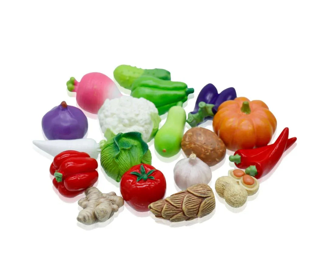 Design: Assorted miniature vegetable models in mixed colors