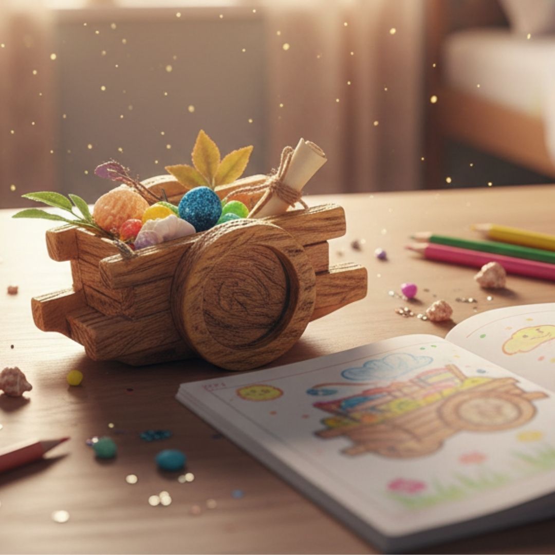 Miniature Wooden Toy Cart | Handcrafted Mini Décor Model (1 Pc): A tiny handcrafted wooden cart that gives total vintage vibes! Perfect for school projects, dollhouses, dioramas, home décor setups, gifting hampers, or craft displays. Small but super aesthetic ✨🌿