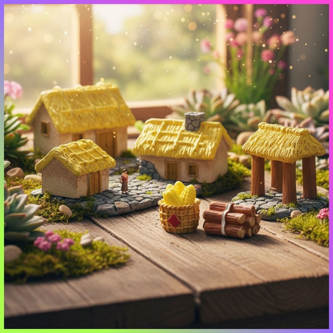 Keywords: mini farmhouse set, village project miniatures, rustic miniature décor, farm model accessories, resin craft props, dollhouse farm set, terrarium décor miniatures.