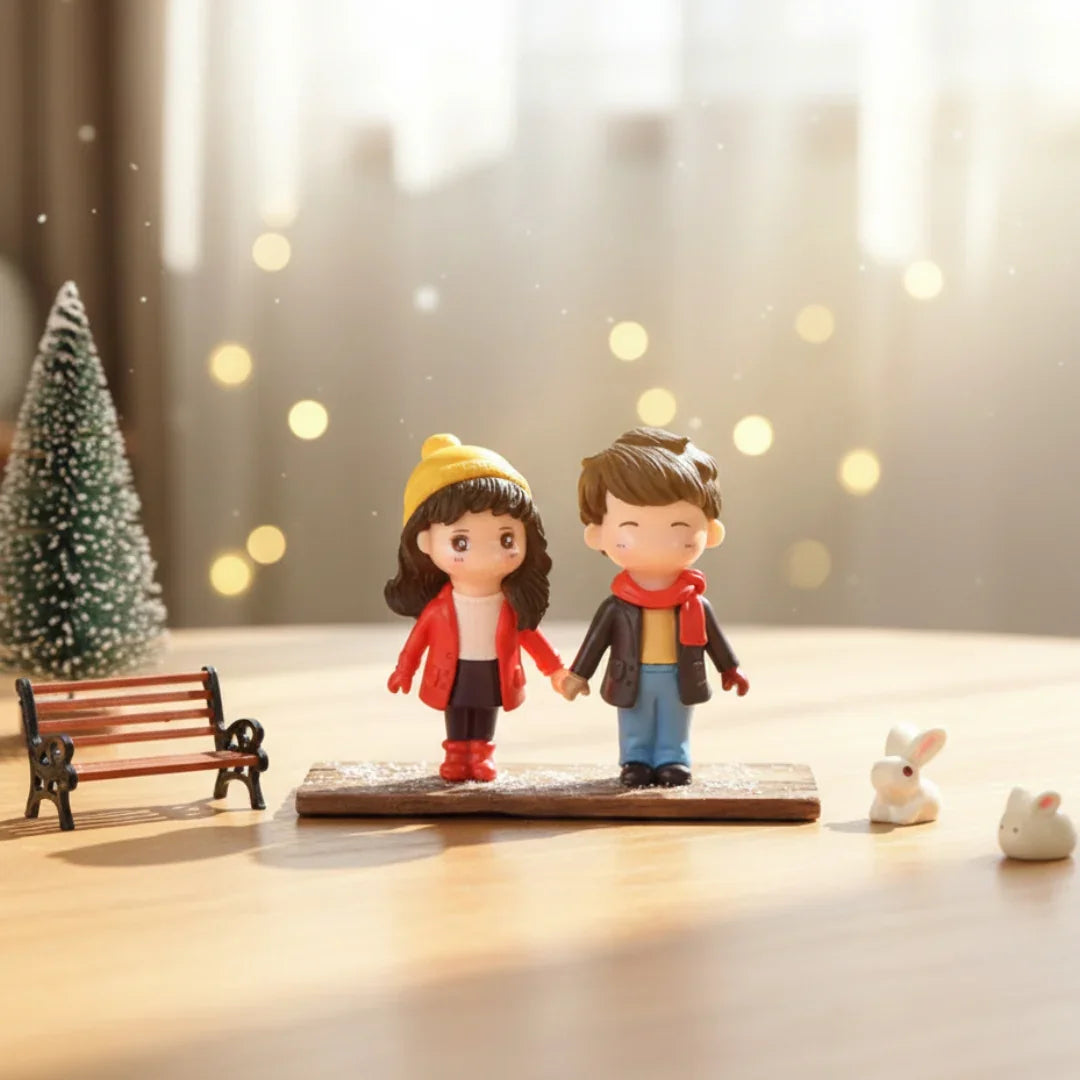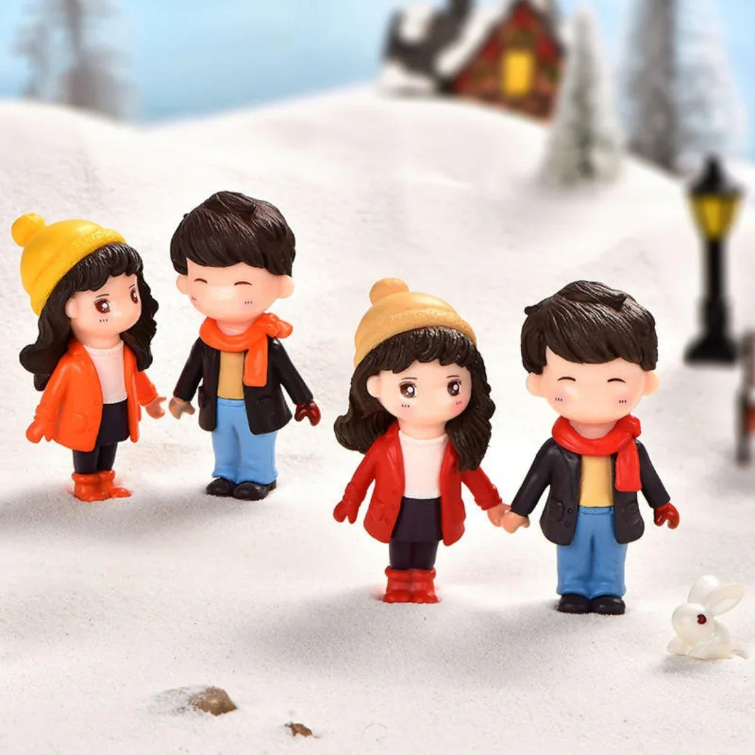 Keywords: mini winter couple, cute figurines, resin miniatures, couple doll set, decorative craft figures, dollhouse accessories, terrarium figurines, DIY craft miniatures, winter theme toys, mini couple statues.