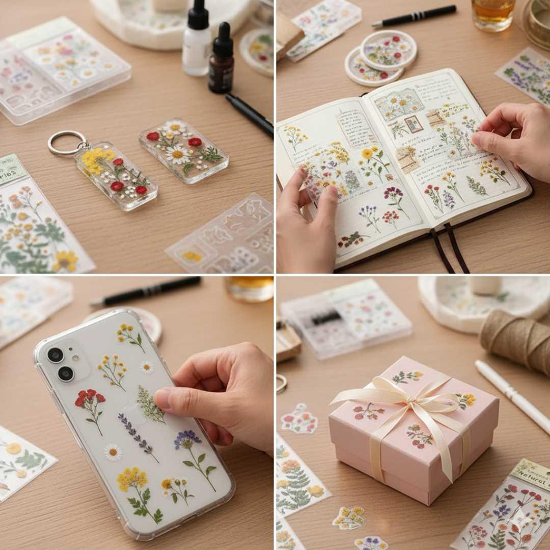 Bring the charm of nature to your crafts with these Natural Series Dried Flower Stickers πΌ β perfect for journaling, resin art, scrapbooks, and aesthetic decor!
