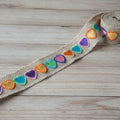 Aesthetic jute lace roll with cute multicolor embroidered heart patches – perfect for all your DIY glow-ups,
