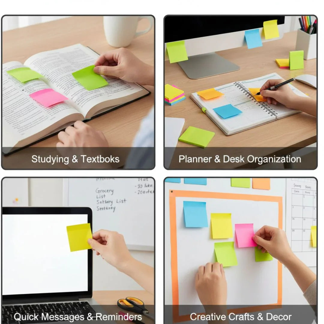 Brighten up your workspace or study sessions with these vibrant neon sticky notes — perfect for jotting down reminders, memos, and motivational notes!