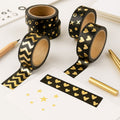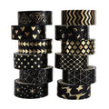 gold foil washi tape, black washi tape, journaling tape, scrapbook tape, decorative masking tape, planner accessories, aesthetic craft tape, gold accent tape, DIY craft supplies, premium washi rolls, luxury washi designs.
