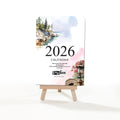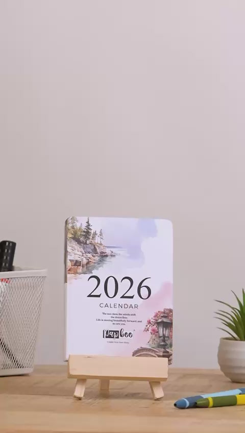 Papboo 2026 Scenic Watercolor Desk Calendar – 12-month landscape art designs on 350 GSM matte paper with wooden easel stand. Perfect for home or office décor.