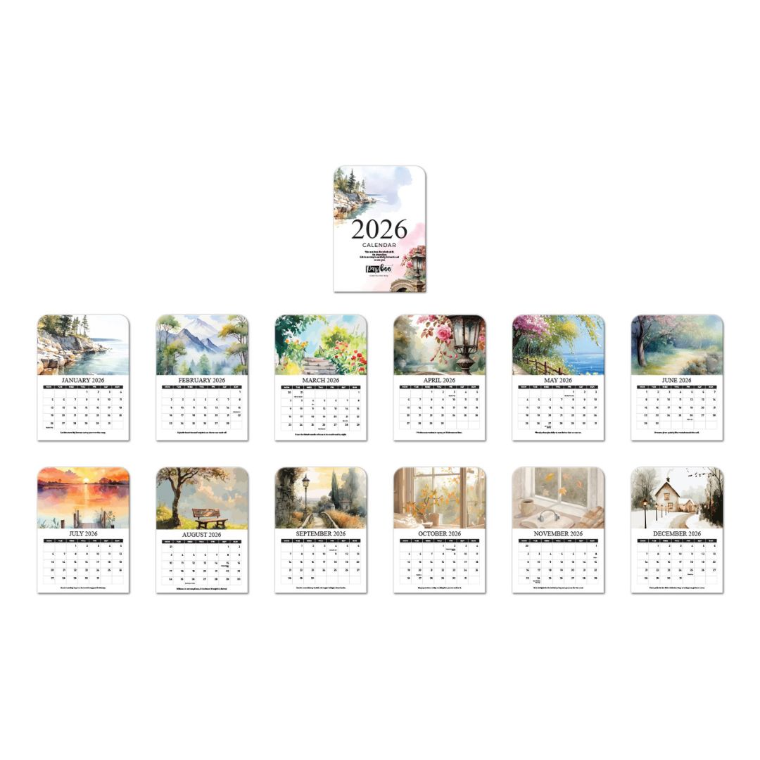 Bring calm and creativity to your workspace with the Papboo 2026 Scenic Watercolor Desk Calendar 🌿 — a visual journey through 12 months of serene landscapes and pastel skies.