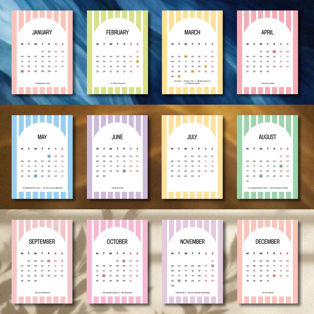 Designed in soothing pastel stripes, this compact monthly calendar keeps your schedule neat and your desk aesthetic. Each page highlights holidays, weekends, and clean date layouts for easy tracking.