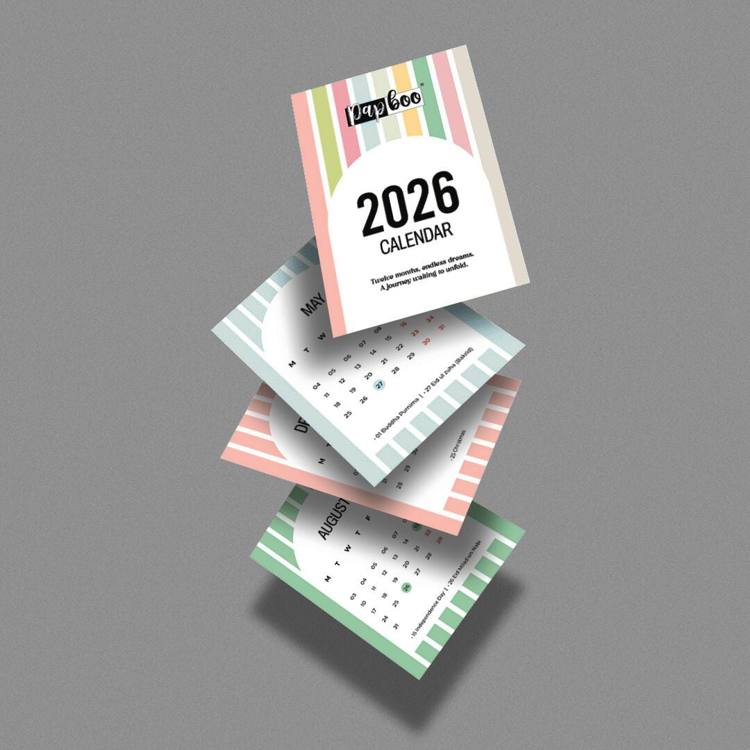 Papboo 2026 Mini Desk Calendar – Pastel striped monthly planner with holiday highlights. Aesthetic small calendar for workspace or gift.
