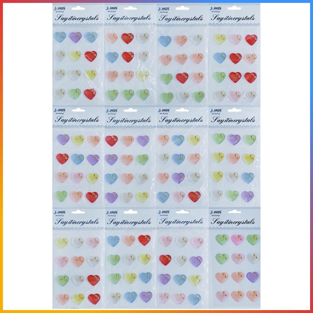 Pastel Heart Crystal Stickers | DIY Craft & Decoration Set l Pack of 1 includes 12 hearts