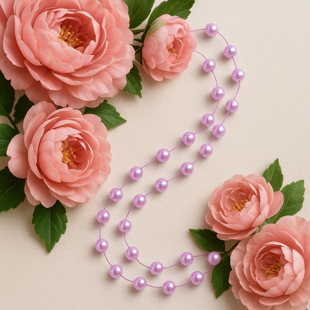 Add a touch of glam to your DIYs with this glossy Purple Pearl Thread! With mini and medium beads strung beautifully on a flexible line, this string is perfect for gift décor, scrapbooking, hamper embellishments, floral wrapping, festive packaging, hair accessories, and wedding decoration crafts.