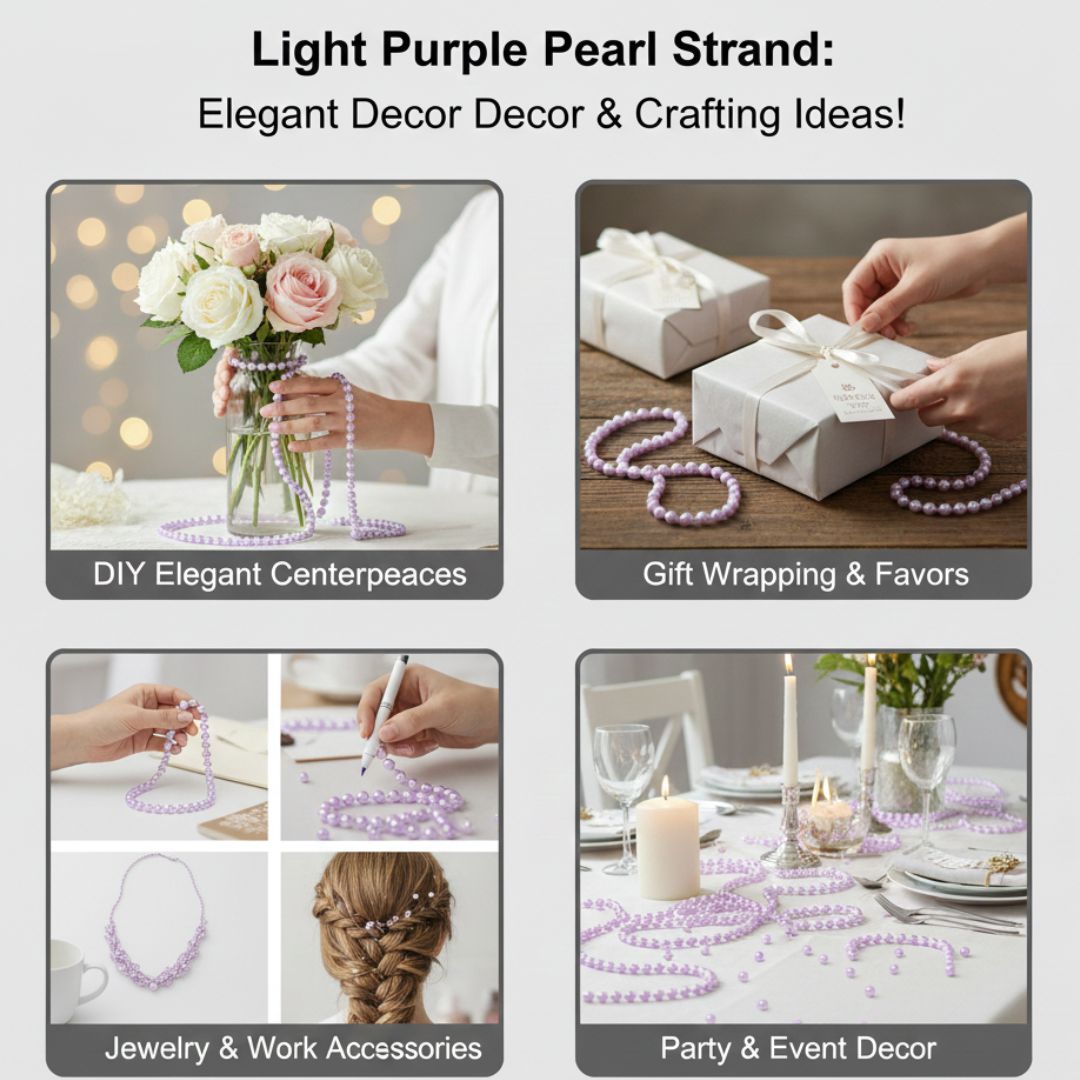 purple pearl thread, craft embellishment string, decorative pearl garland, hamper décor supplies, bouquet pearl string, DIY jewellery beads, wedding décor pearls, scrapbook embellishments, gift wrapping pearl lace, premium craft accessories.