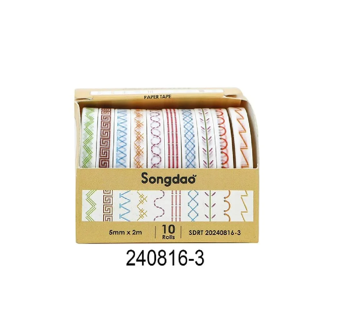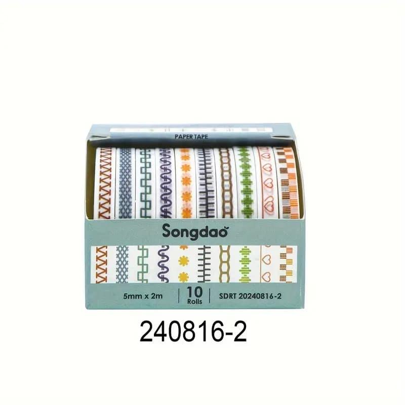 Premium Border Printed Washi Tape – Pack of 10 | Decorative Masking Tape Set ✨