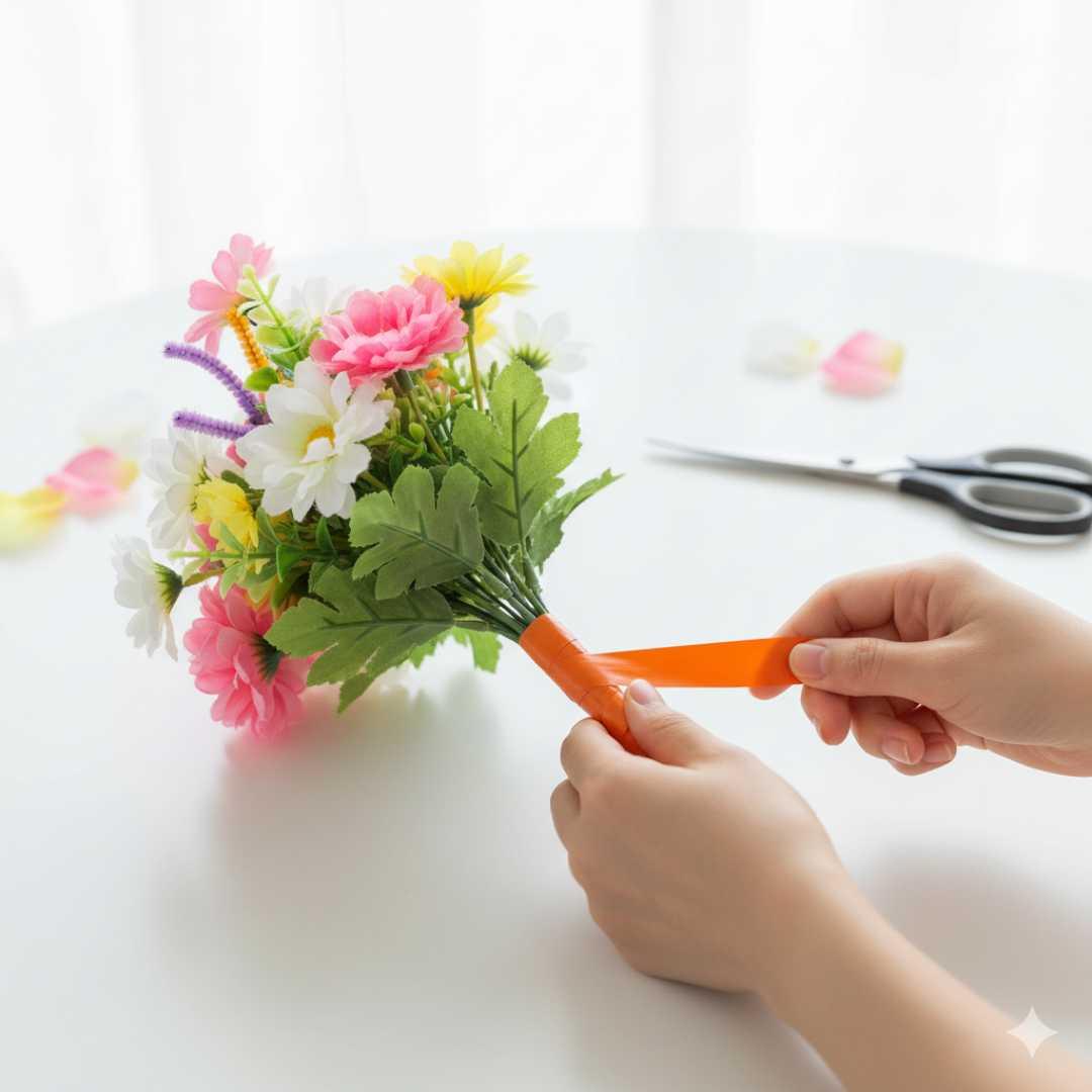 (Buy 1 Get 1 Free) Premium Craft Flower Making Tape | Orange | Pack of 1 | CFTB-OE | Used in Combination with Pipe Cleaners. This Premium Orange Craft Flower Tape is perfect for wrapping flower stems, securing floral wires, and enhancing handmade decorations. Its flexible and stretchable texture ensures a smooth finish for your DIY projects. Ideal for flower making, craft decorations, and bouquet wrapping, it pairs beautifully with pipe cleaners, wires, and artificial pollens for professional-looking floral designs.
