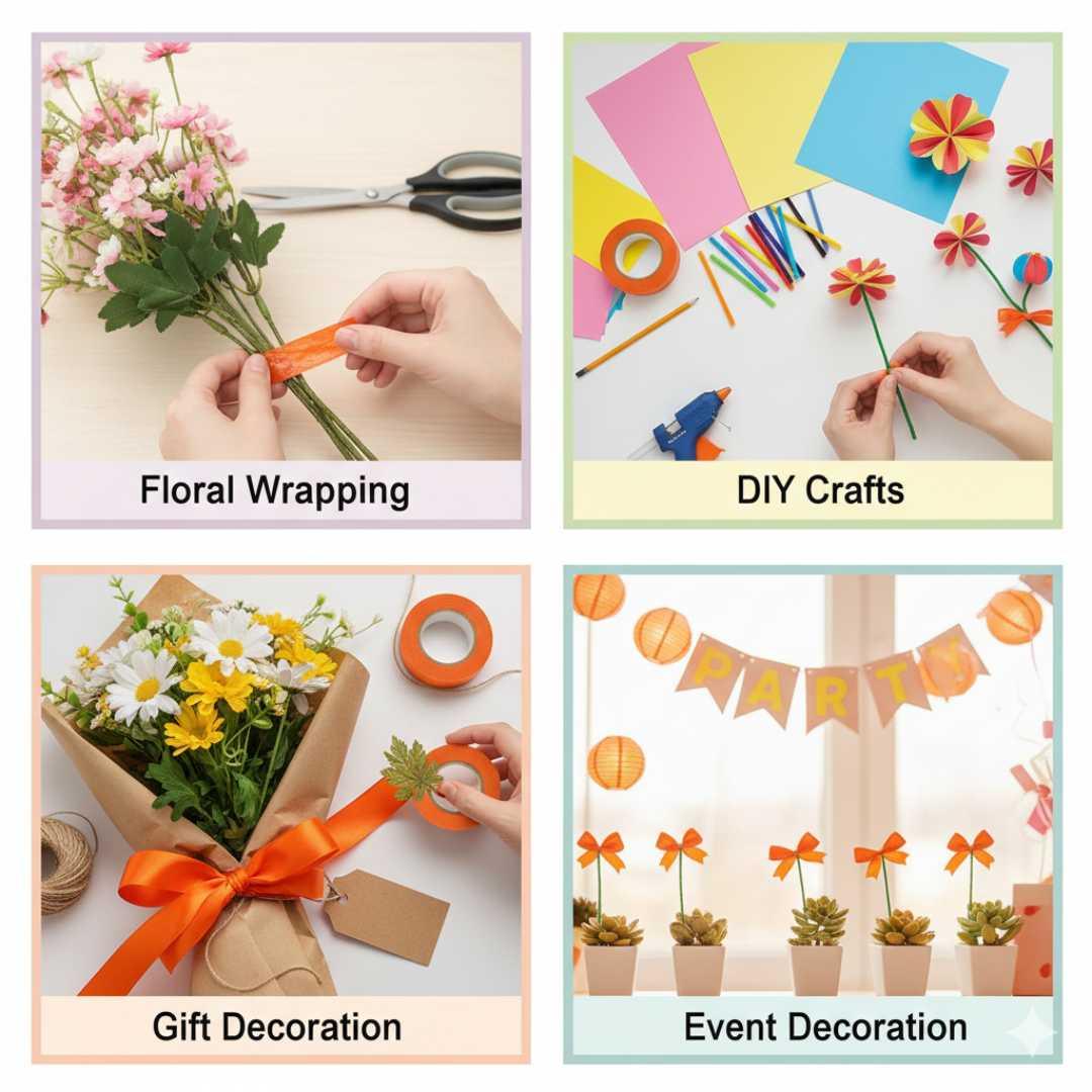 orange floral tape, flower making tape, craft supplies, DIY bouquet materials, orange craft tape, floral wire wrapping tape, pipe cleaner combo, handmade flower accessories, floral arrangement supplies, adhesive floral tape, decorative tape for crafts, premium flower craft tape, art and craft essentials, DIY floral project materials.
