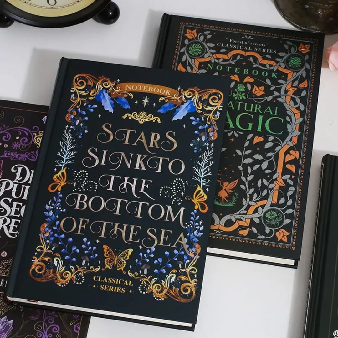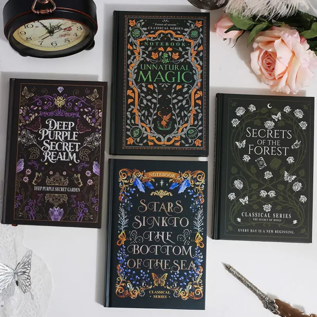 Keywords: Decorative notebook, hardcover journal, aesthetic notebook, vintage style diary, premium ruled notebook, artistic notebook, dark academia journal, gift notebook, fancy stationery