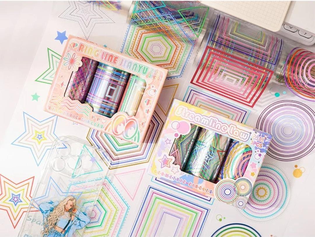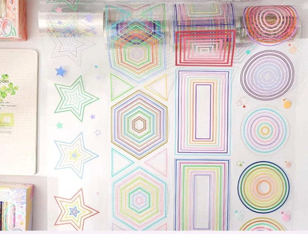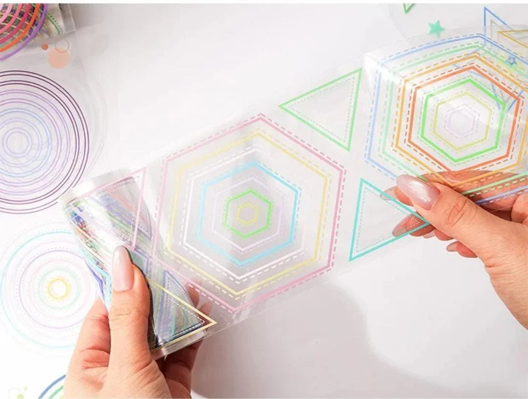 rainbow PET stickers, journaling stickers roll, aesthetic sticker roll, transparent craft stickers, scrapbook stickers, geometric stickers, diary decoration, planner supplies, rainbow craft roll, kawaii PET tape.