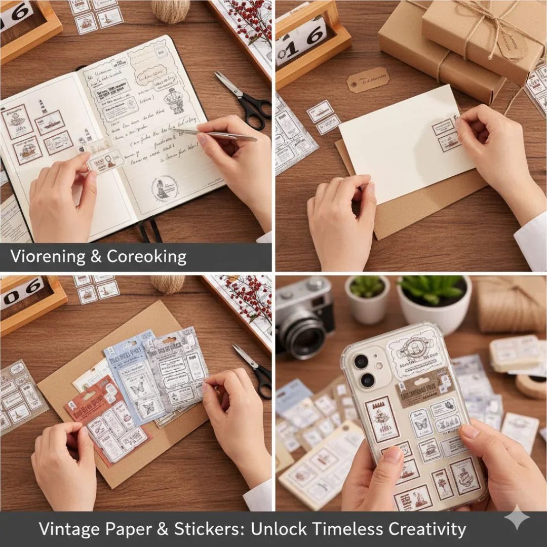 (Buy 1 Get 1 Free) Premium Postage Stamp Stickers – Vintage Series (Pack of 4 Sheets)