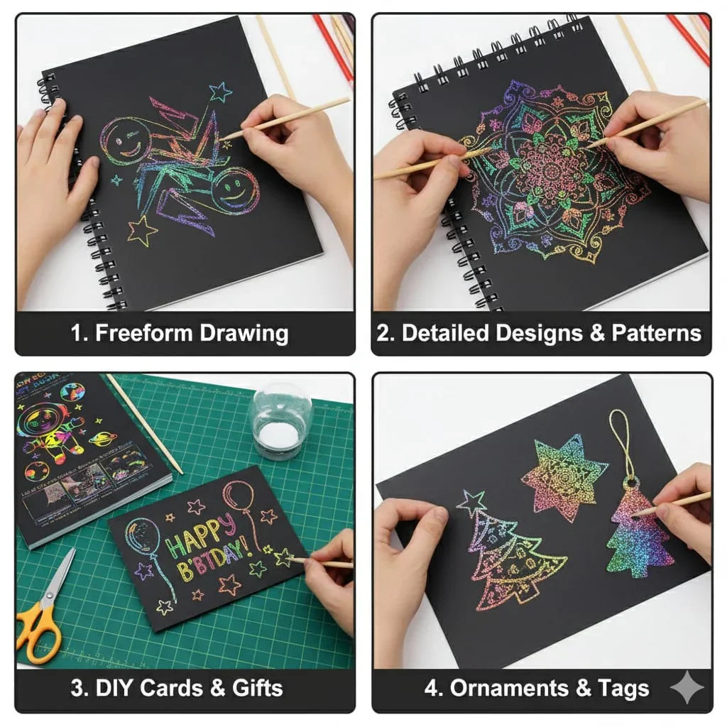 Keywords: Scratch Art Book, Magic Scratch Paper Pad, Rainbow Drawing Notebook, Scratch Note Book for Kids, Wiro Scratch Pad, Scratch Art Notebook A6, Color Reveal Scratch Paper, DIY Scratch Doodle Book, Creative Art Pad, Magic Color Scratch Notes.