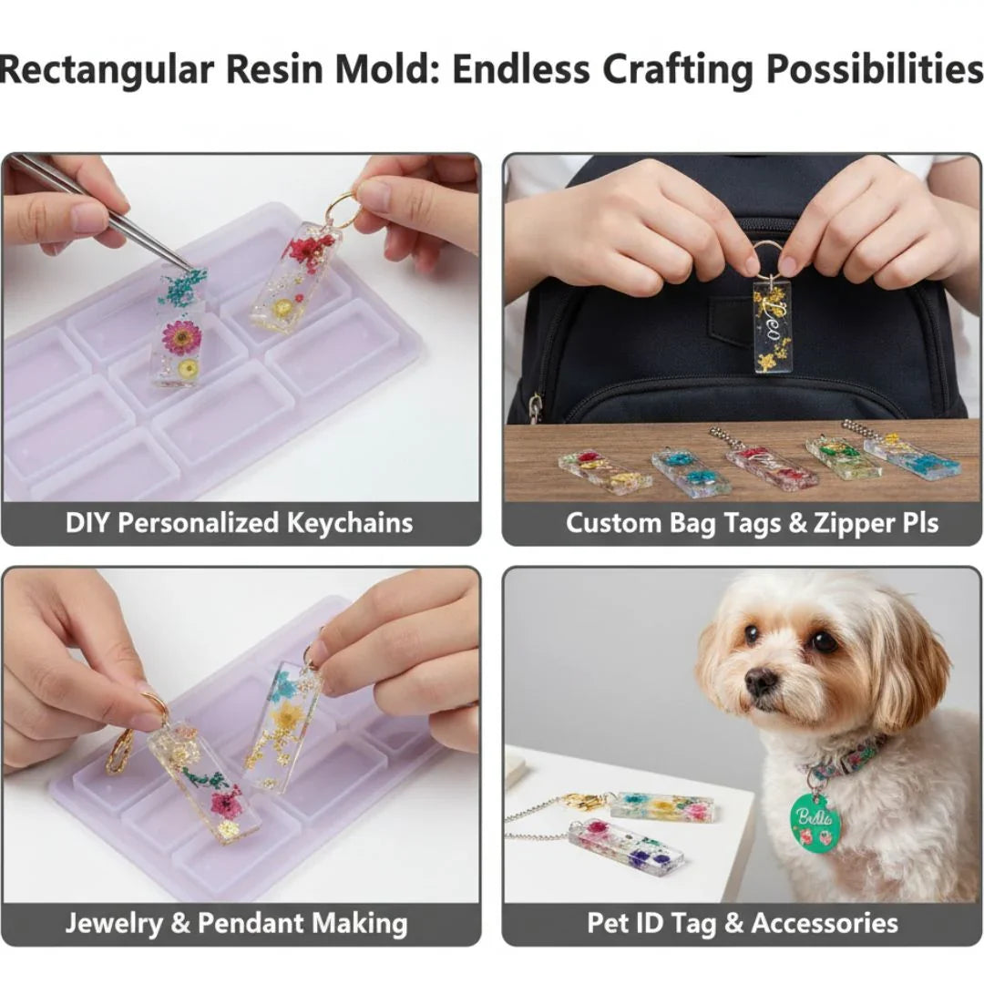 resin mold, silicone mold, rectangular resin mold, keychain mold, pendant mold, epoxy resin craft, jewelry making, DIY resin, keychain making supplies, resin art accessories, charm mold.