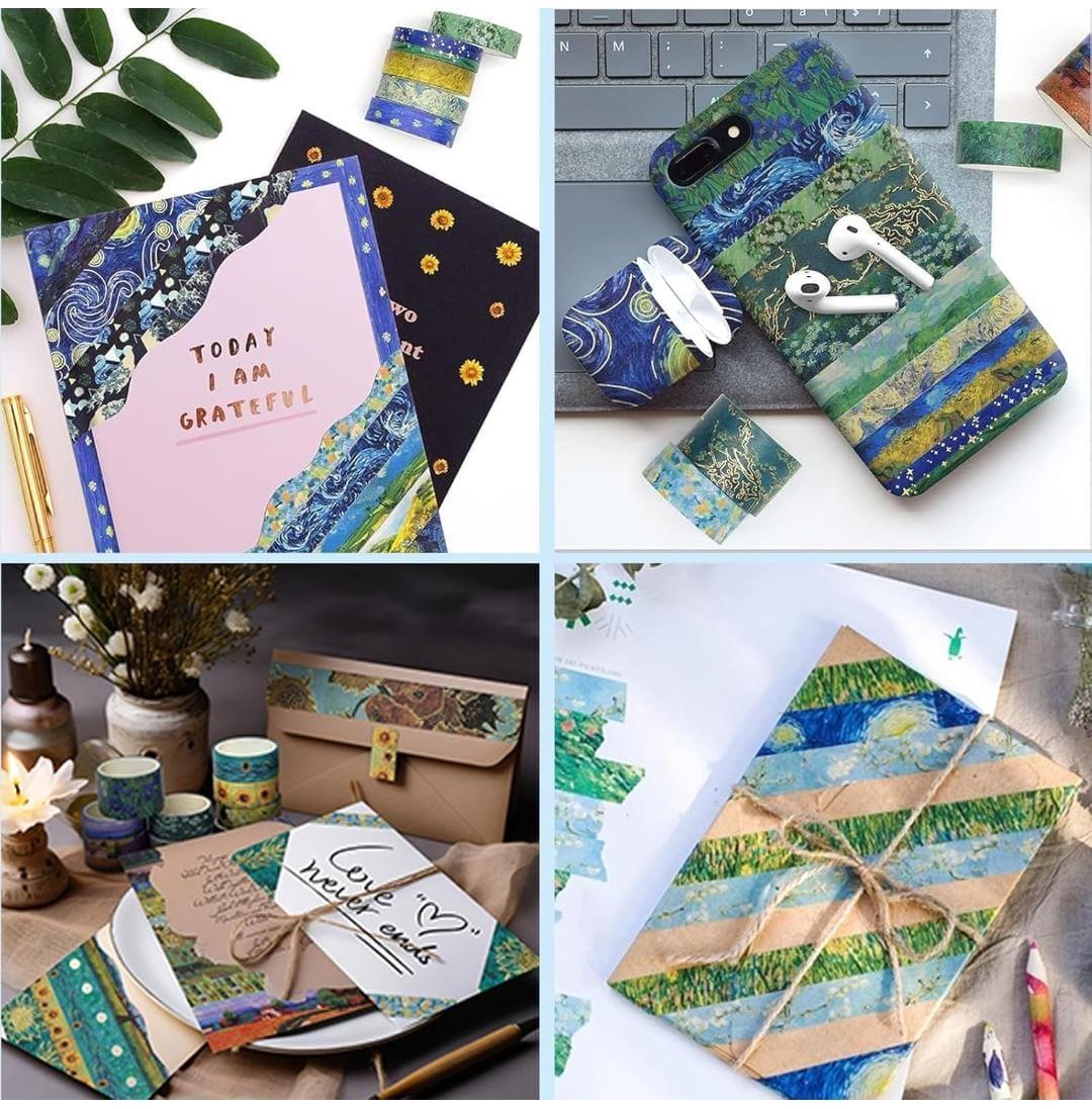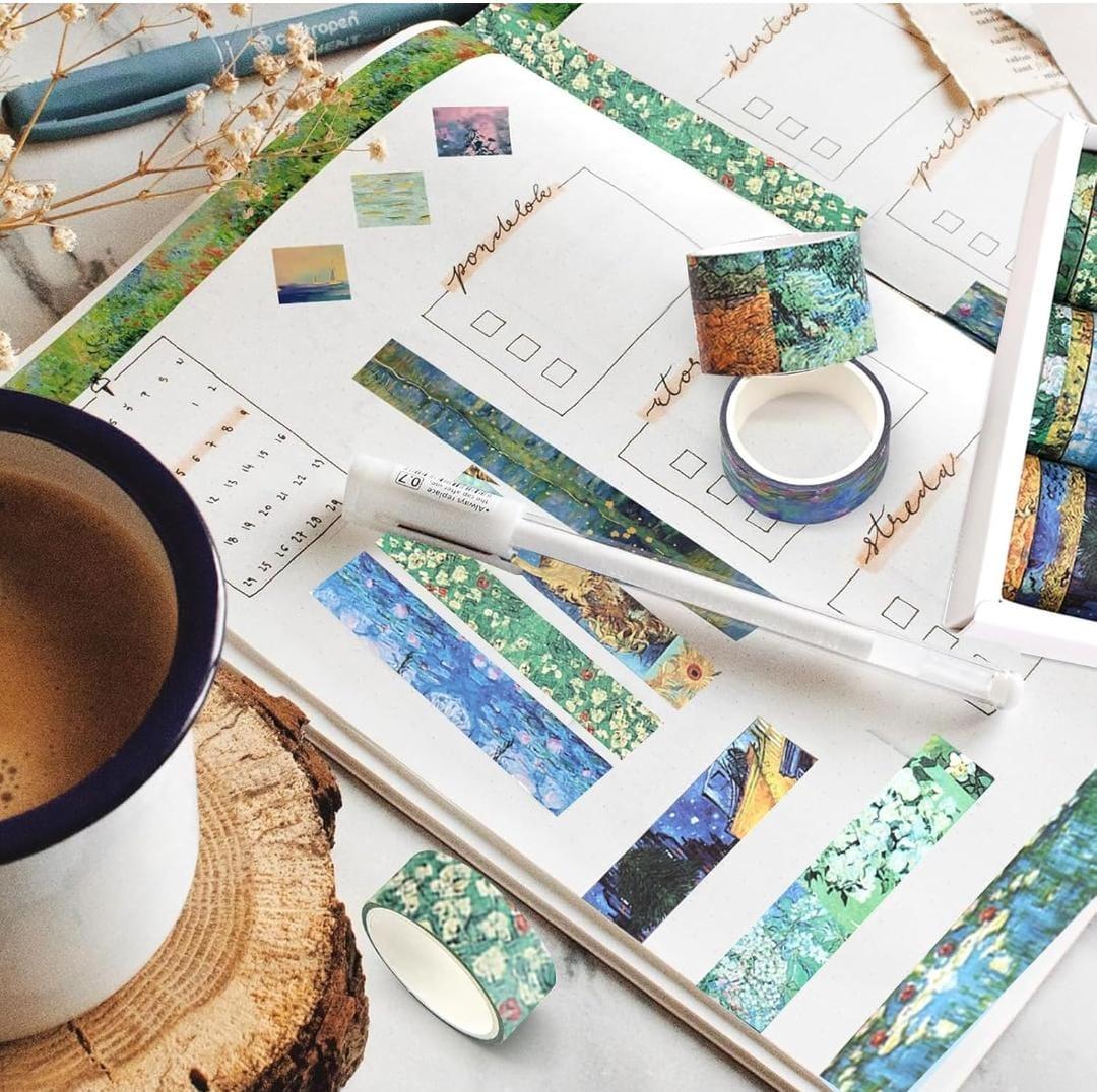 van gogh washi tape, aesthetic washi roll, art theme tape, scrapbook supplies, journal decoration tape, starry night tape, aesthetic stationery, artistic washi set, 10-piece washi tapes.