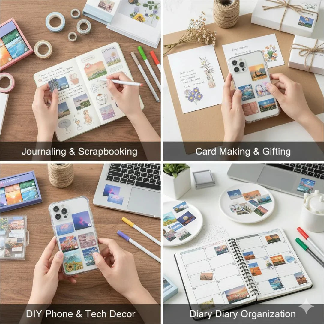 Journals, Notebooks & Scrapbooks, Bullet Journaling & Planners, Card Making & Collage Art, Decorate Laptops, Bottles & Envelopes