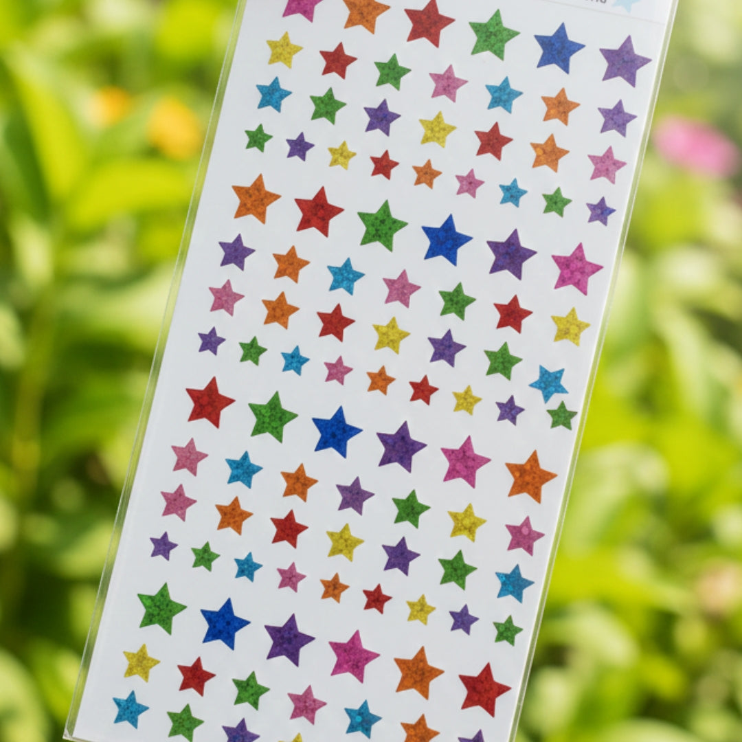 star stickers, colorful star stickers, mixed color stickers, reward stickers for kids, shiny star stickers, scrapbook star stickers, planner decor stickers, craft stickers, school project stickers, decorative star stickers, kids activity stickers