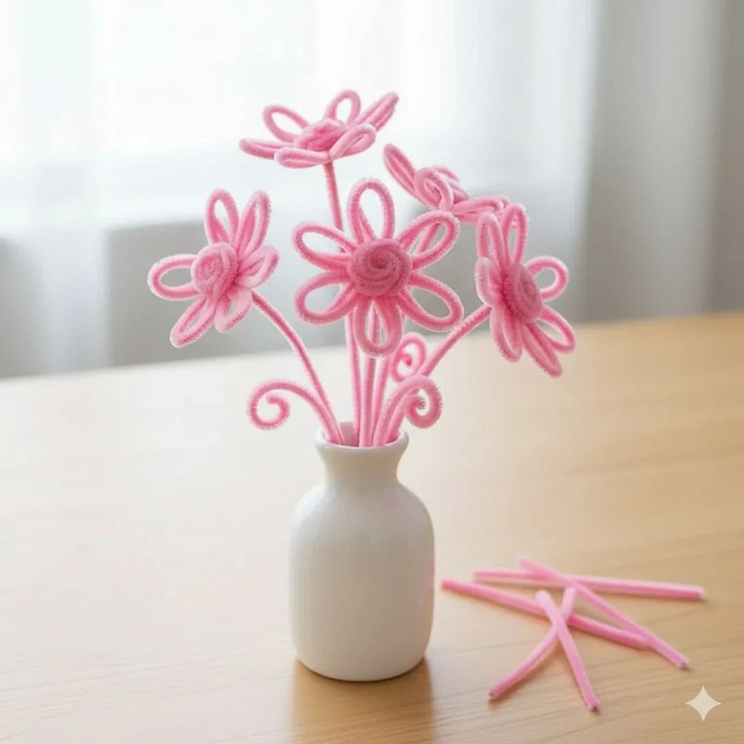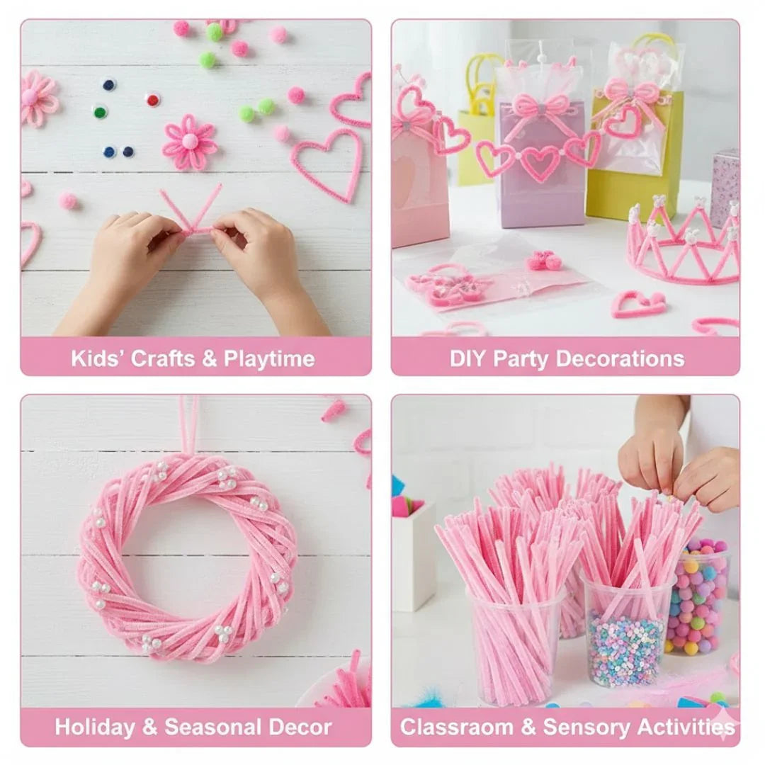 Chenille Stems, Craft Pipe Cleaners, DIY Craft Supplies, Pink Craft Wires, Art & Craft Materials, Fuzzy Pipe Cleaners, Kids Craft Kit.