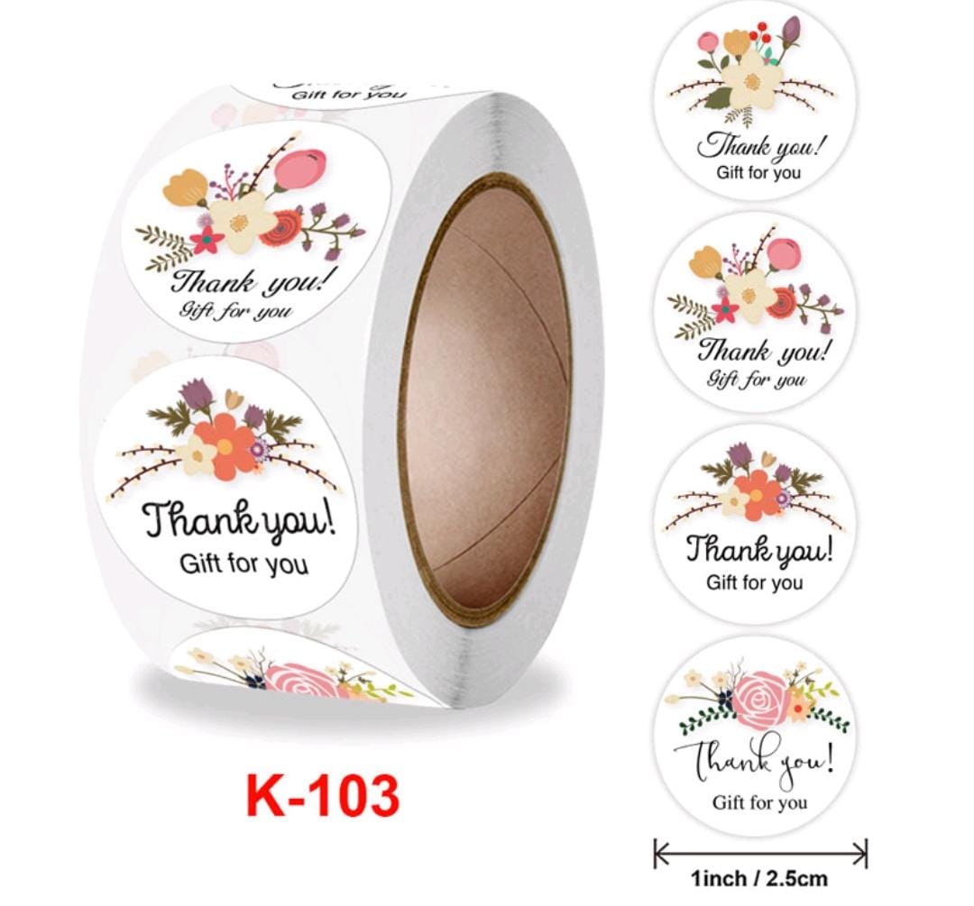 Thank you stickers & labels for Packaging (500 Sticker Roll of 1 Inch)