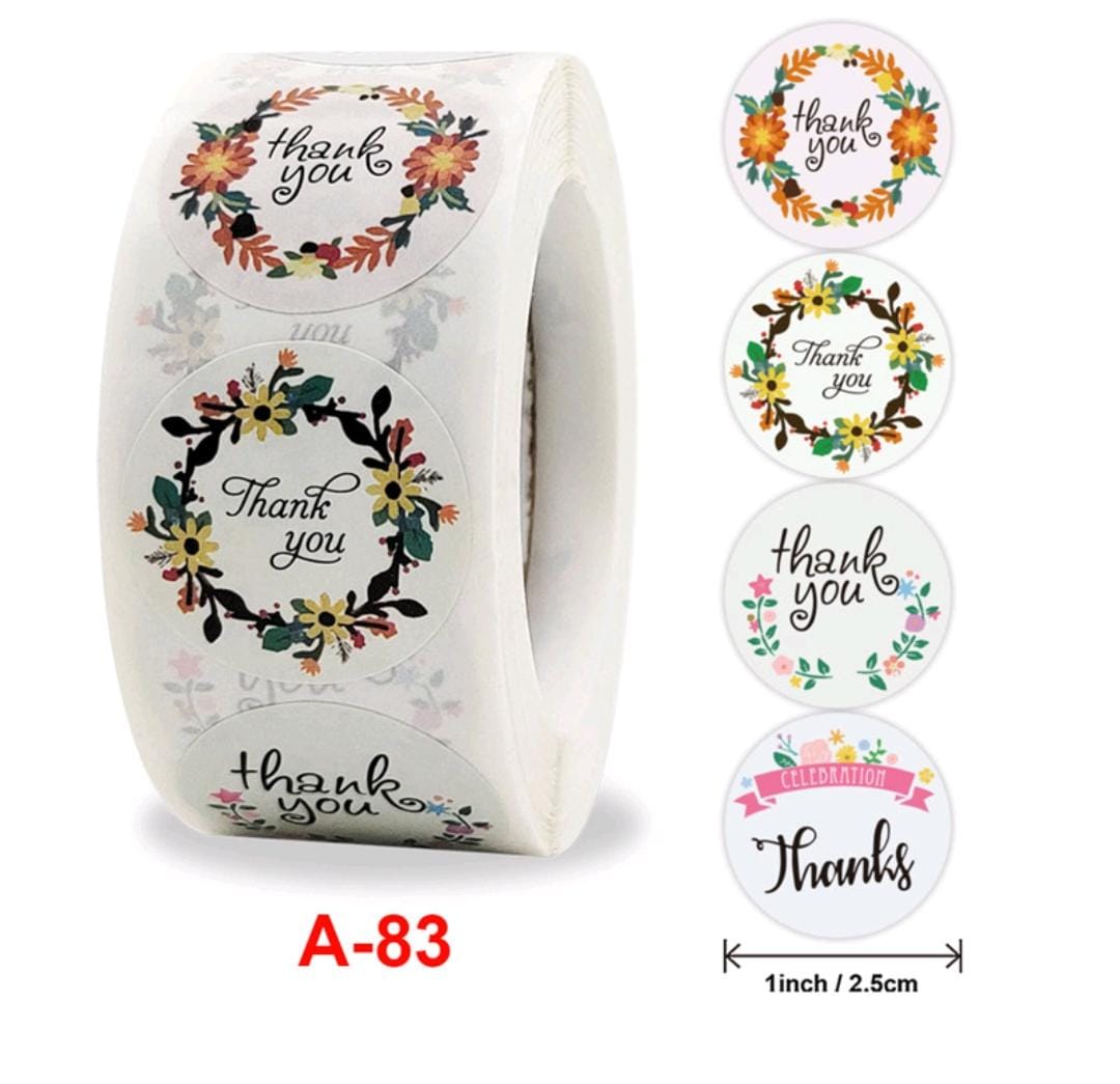 Floral Thank You Stickers Roll | 500pcs Round Labels (1 Inch)
