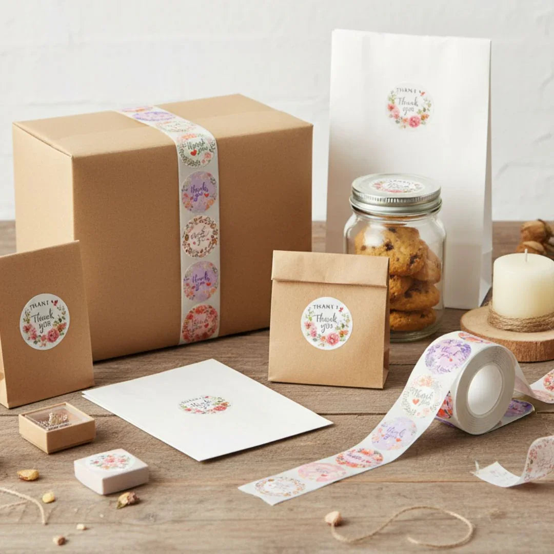 Floral “Thank You” Stickers Roll – 500 Pcs (1 Inch Each). Add a warm, personal touch to your packaging with these Floral “Thank You” Stickers! Each roll includes 500 premium-quality round stickers with adorable floral prints and heartfelt messages — perfect for small businesses, gift packaging, party favors, and DIY crafts. These easy-peel adhesive labels stick smoothly to any surface, giving your packages a professional yet cozy vibe.