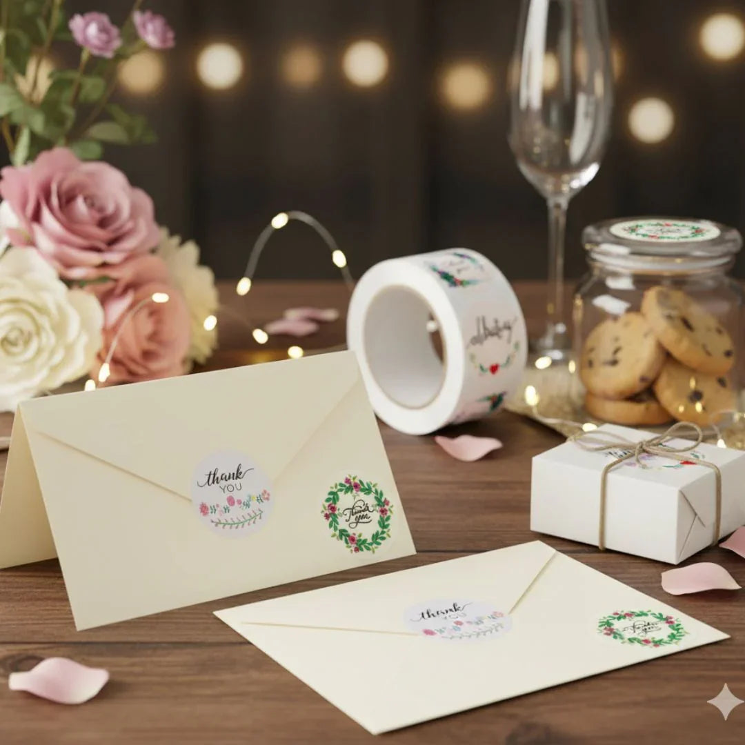 Floral Thank You Stickers Roll – 500 Pcs (1 Inch Each) .Make your packaging look extra sweet with these Floral Thank You Stickers! Each roll contains 500 premium-quality round stickers with elegant floral patterns and cute typography — perfect for small business packaging, gifts, envelopes, handmade products, and DIY crafts. The glossy finish and strong adhesive ensure they stick beautifully on boxes, bags, jars, and more!