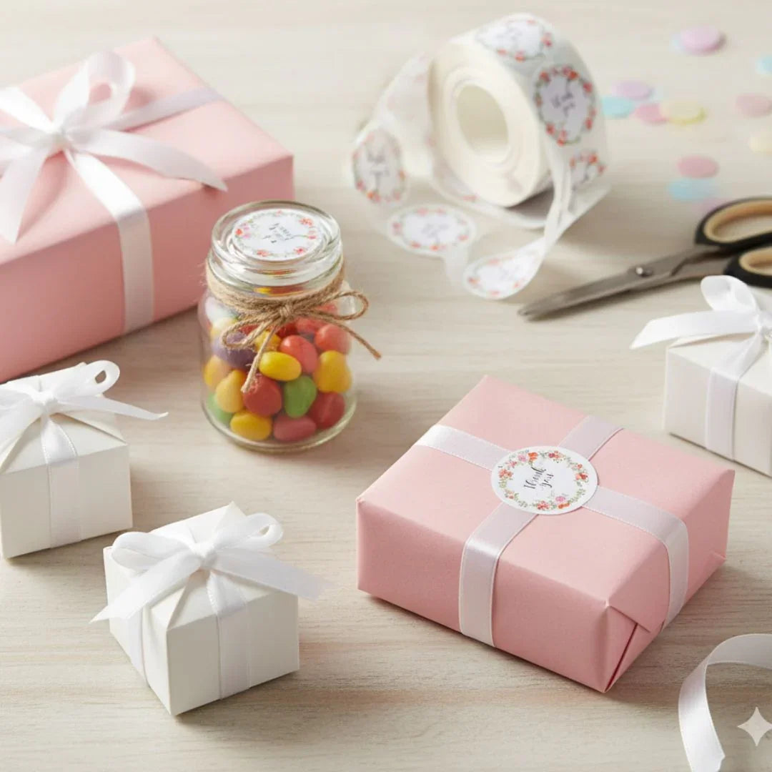 Small business packaging, gift wrapping, thank-you cards, party favors, product branding, bakery boxes, and DIY crafts.