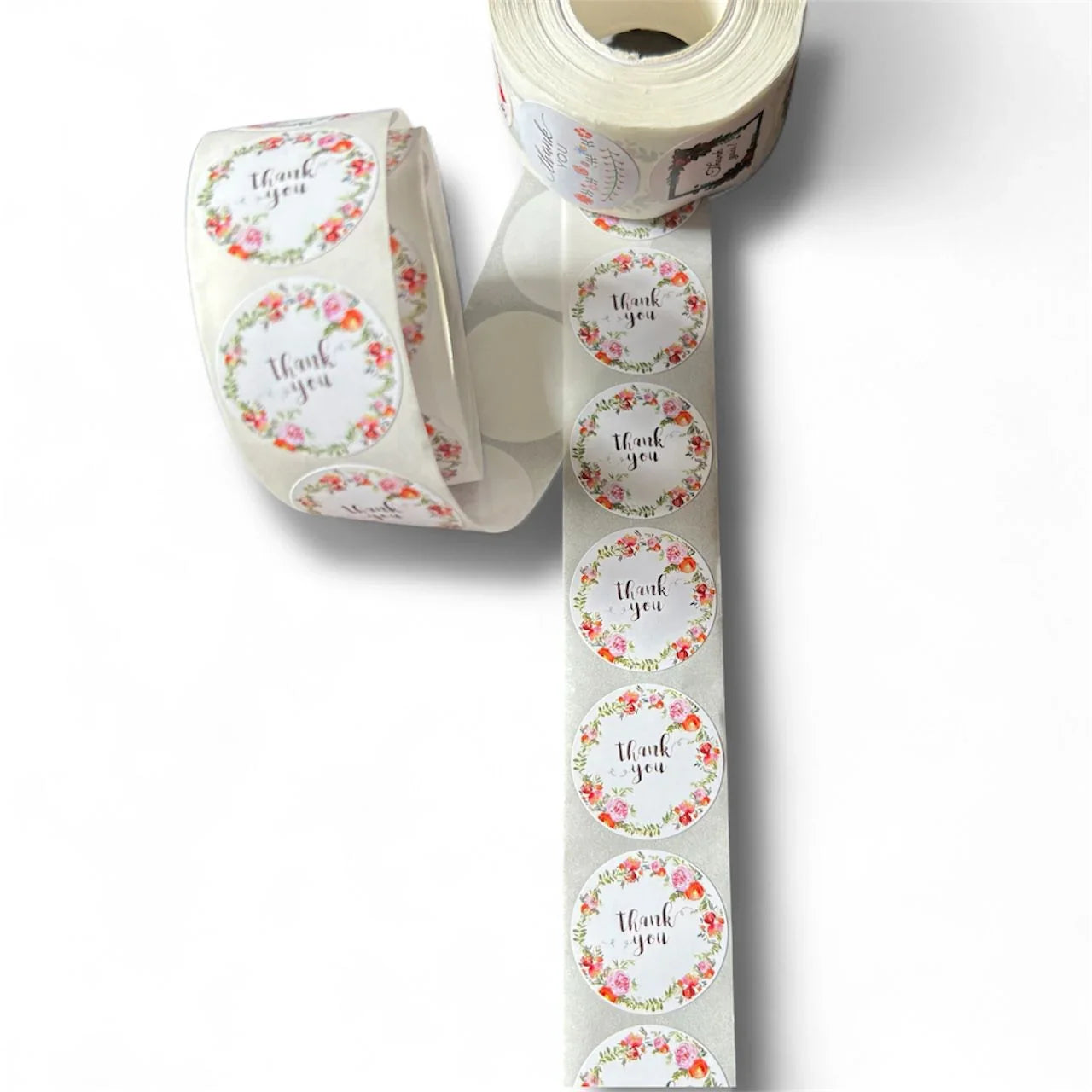 Floral Wreath Thank You Stickers Roll – 500 Stickers (1 Inch Each) .Make your packaging bloom with these Floral Wreath Thank You Stickers! Each 1-inch round sticker features a soft white base with a delicate floral wreath design and elegant “Thank You” lettering — perfect for adding a sweet, professional touch to your parcels, envelopes, or gift boxes. Whether you’re a small business owner, crafter, or gift wrapper, these stickers make every package feel extra special.