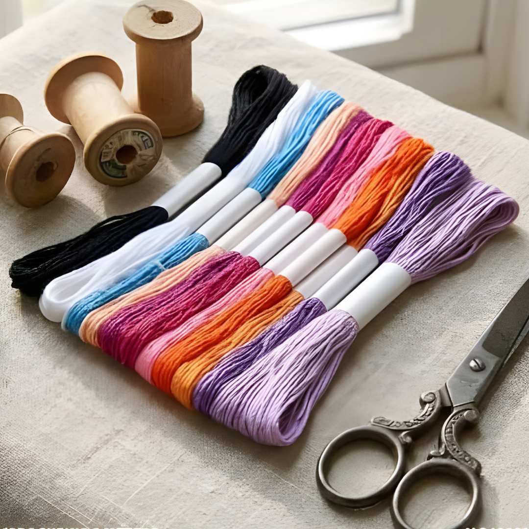 Keywords: cotton threads, embroidery threads, mix color threads, craft threads, stitching thread, set sewing, supplies, DIY craft materials, soft cotton threads.