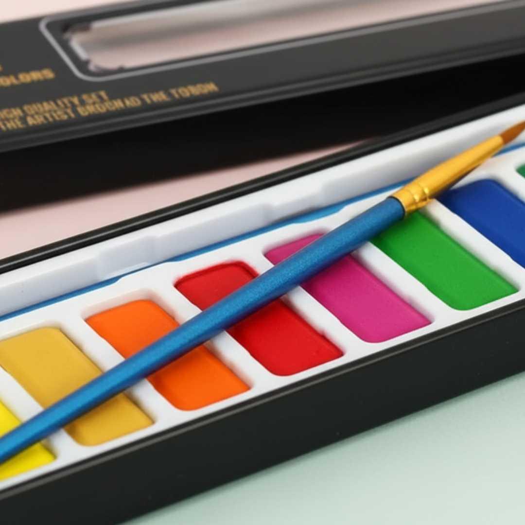 🎨 Vibrant Palette – 12 Exquisite Watercolors with Brush