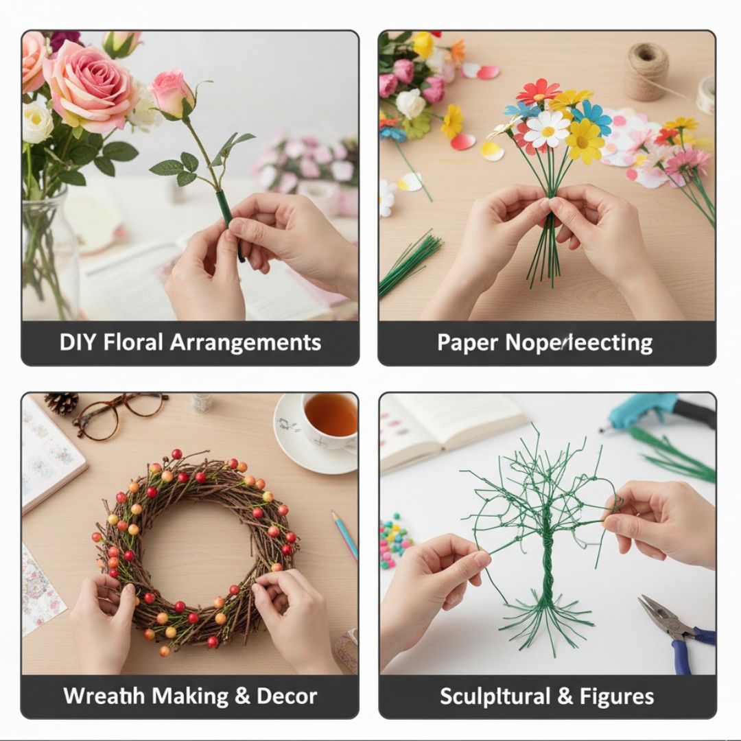 floral wire, dark green craft wire, bouquet wire, 18 gauge floral wire, flower making accessories, DIY craft materials, florist wire stems, flower stem support wire, art and craft wire, floral supplies, wire for artificial flowers.