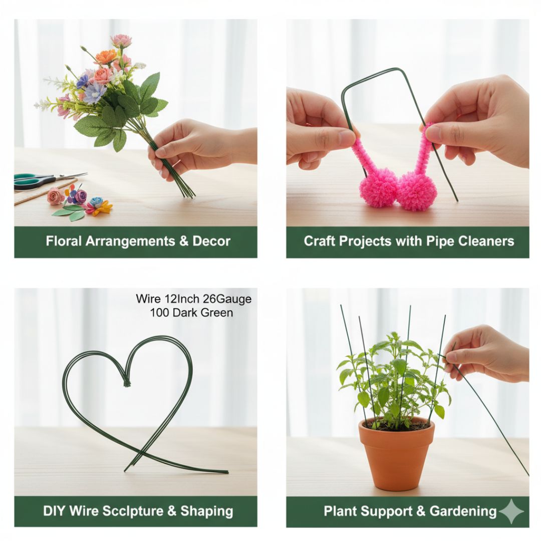 floral wire, craft wire, dark green wire, bouquet making wire, 20 gauge floral stem, flower arrangement wire, DIY craft accessories, floral art supplies, pipe cleaner wire, florist wire, handmade decoration wire, flower stem support.